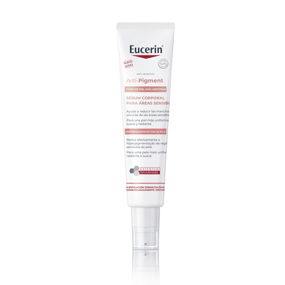 Para zonas sensibles como ingles o la parte interna de los muslos, una excelente opción es el Eucerin Anti-Pigment Sensitive Areas Body Serum. Su fórmula ligera y de rápida absorción ha sido desarrollada para corregir manchas oscuras en áreas con mayor sensibilidad y fricción, ayudando a unificar el tono de la piel sin causar irritación. Contiene Thiamidol, un ingrediente patentado que actúa directamente sobre la raíz de la hiperpigmentación, ayudando a prevenir su reaparición con un uso regular.