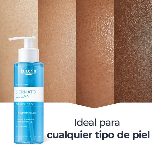Muchos jabones son demasiado alcalinos y pueden dañar la capa protectora natural de la piel, e irritarla y resecarla. Los limpiadores Eucerin DermatoCLEAN [HYALURON] cuidan la piel y la protegen frente a la sequedad. El sebo (la sustancia grasa que la piel produce de forma natural para evitar que se seque) no es soluble en agua, por lo que no puede retirarse si solo se lava la cara con agua.